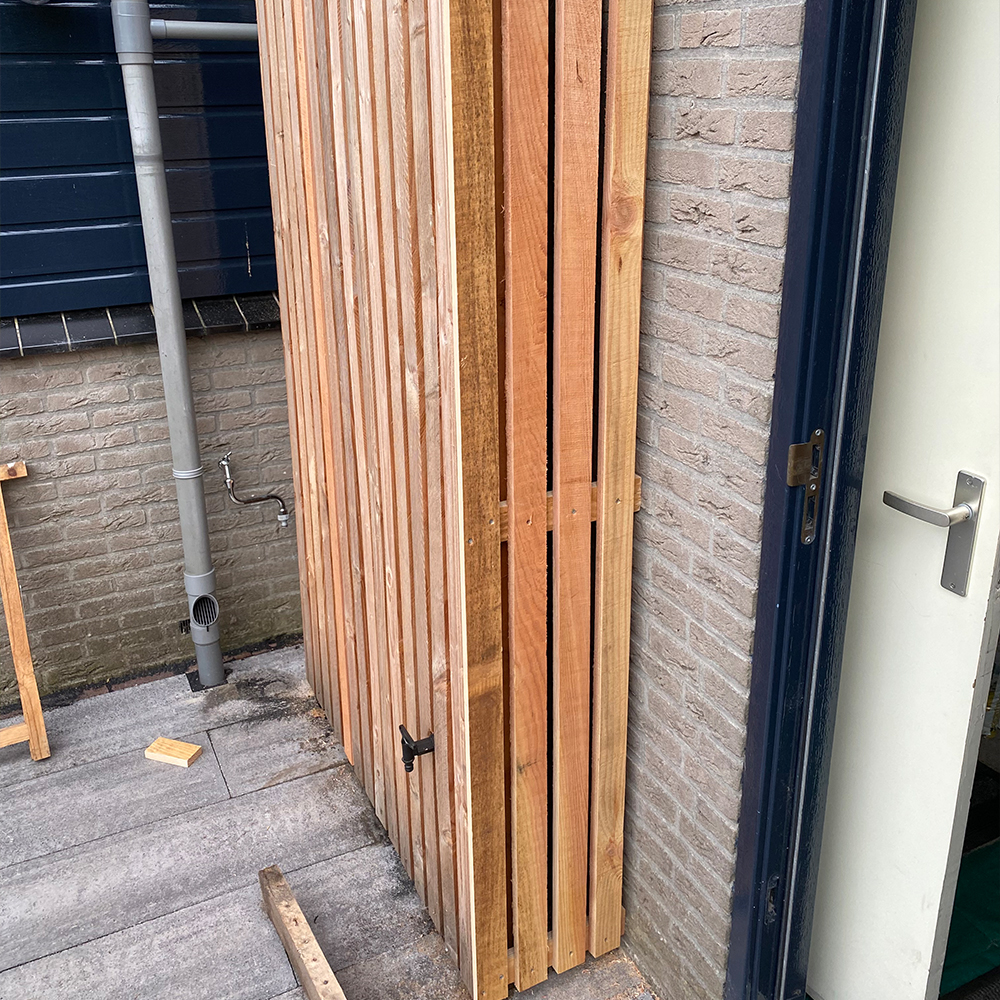 Naast ondergrondse oplossingen zijn er ook mogelijkheden voor bovengrondse opslag. Denk bijvoorbeeld aan een watertank geïntegreerd in een schutting of geplaatst tegen een gevel. Deze tanks kunnen functioneel worden weggewerkt of juist stijlvol worden opgenomen in het tuinontwerp, zodat ze bijdragen aan zowel waterbeheer als uitstraling.
